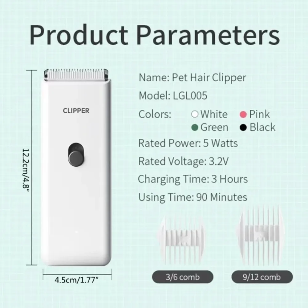 Name:Dog Hair ClipperColor:As ShownSize:As ShownMaterial:ABS, Stainless SteelPower supply: USB chargingPackage Includes:1set Dog Hair Clipper